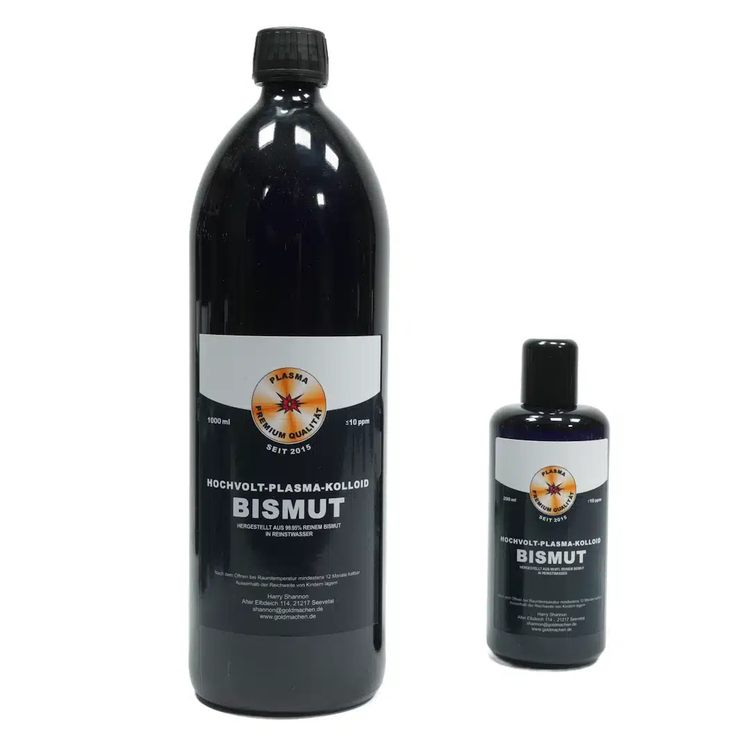 kolloidales Bismut – hergestellt im Hochvolt-Plasma-Verfahren (Bredig-Verfahren) mit ≤ 10 ppm (mg/L) in Premiumqualität. 12 Monate haltbar.